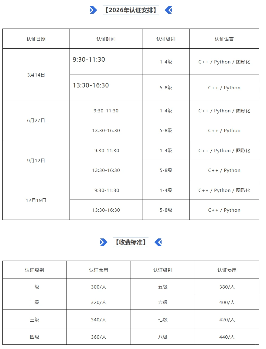 准备冲编程等级认证的宝子看过来!2026 年 CCF GESP 认证安排终于出啦~ 四次考试时间、报名流程、收费标准一次性整理清楚,新手也能轻松 get!