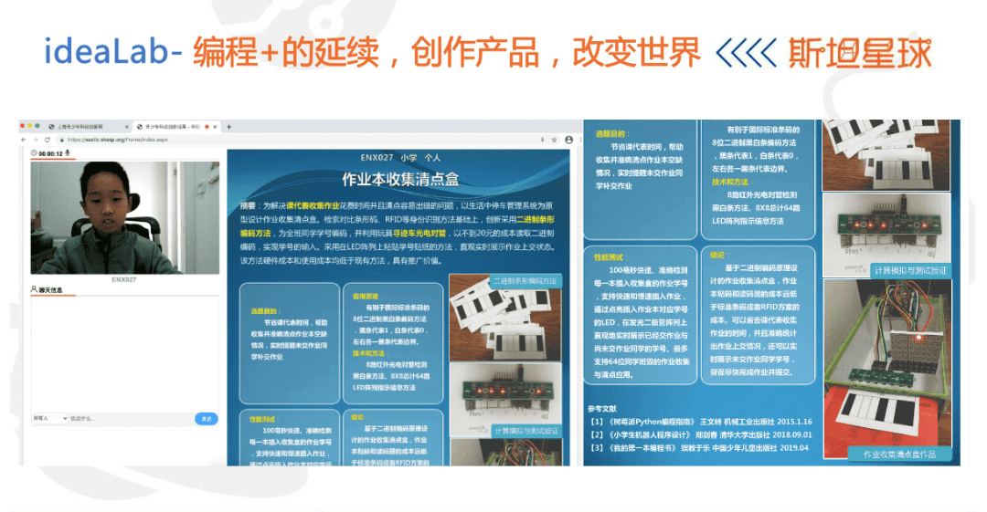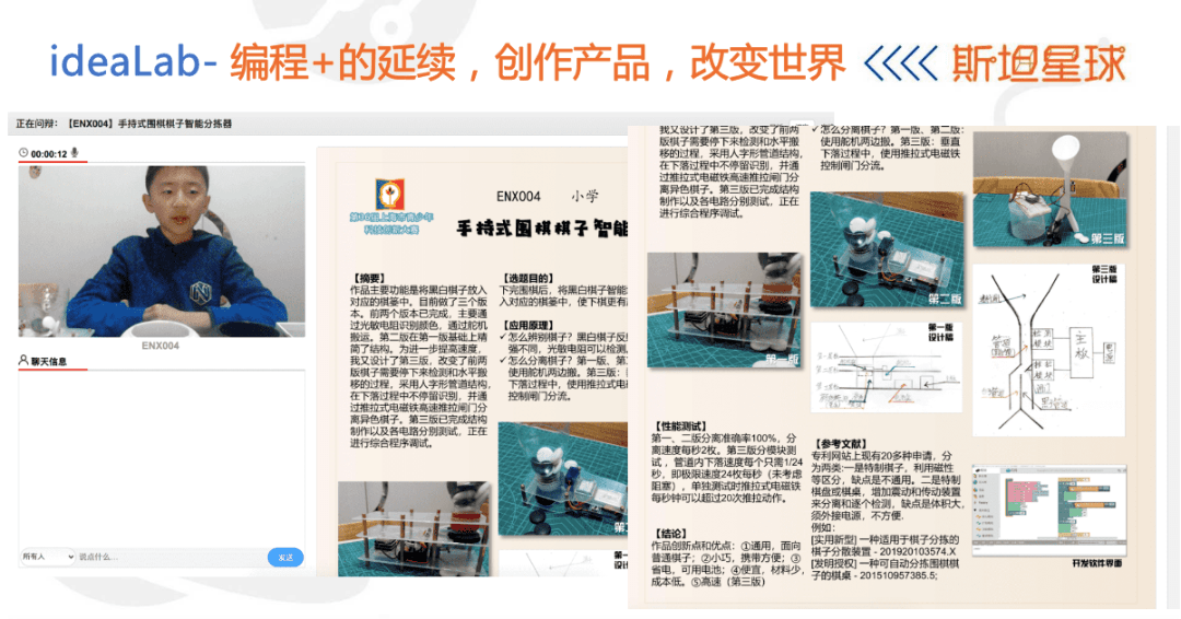 会上,苏行洲老师还分享了学员一系列科创成果,并展示了斯坦星球的多元生态课程体系。