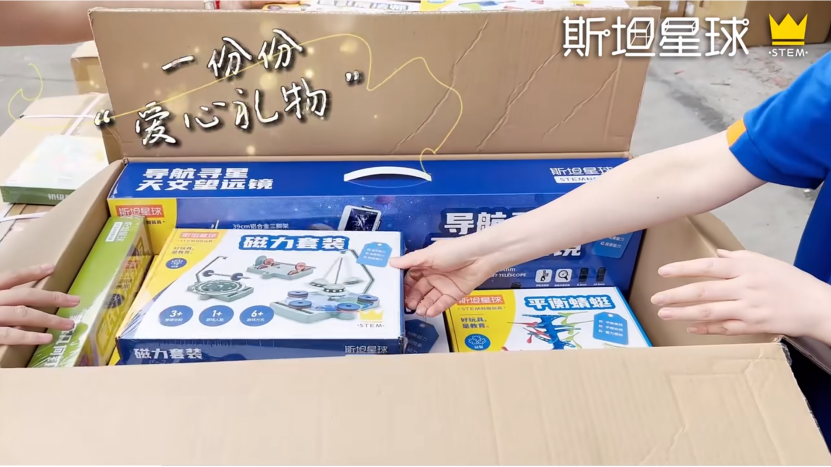 向“宝藏小屋”、“一个鸡蛋”、“梦想教室”3个公益项目的100个服务点捐赠1500份科创玩具,点燃科技梦想。