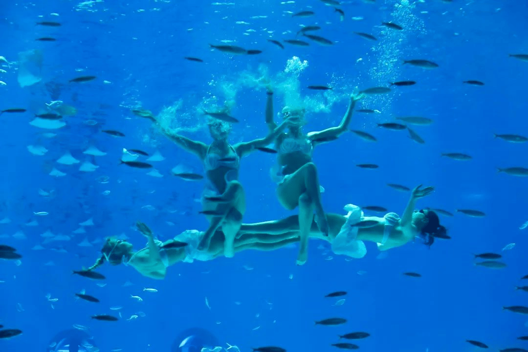 美丽善良的人鱼公主们舞动曼妙身姿,在湛蓝深海中还原童话里浪漫情节,唯美上演爱与奉献的故事。