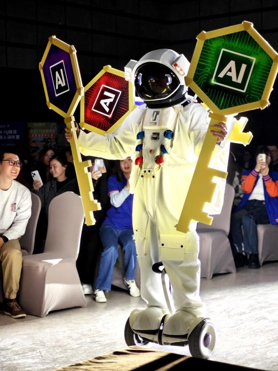 神秘“宇航员”手持“AI之门金钥匙”的亮相环节,更以沉浸式互动形式,点燃了现场对人工智能教育的期待。