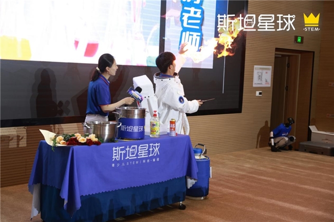 发布会现场,斯坦星球带来“火焰掌”“液氮爆炸”等震撼科学秀。当老师手掌燃起火焰却毫发无损,当液氮爆发腾起巨大白色烟雾,孩子们的惊叹声此起彼伏。