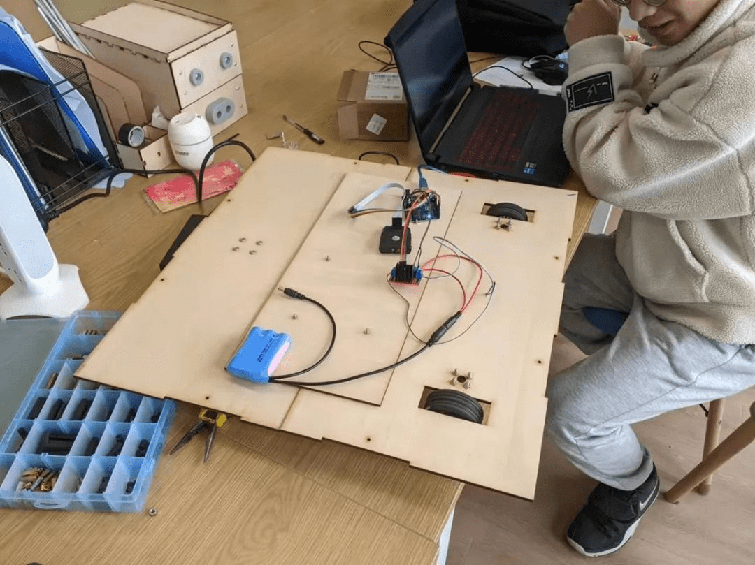 除此之外,为增加设备可玩性,遥控小车还会加入有趣的机械结构,以多种方式前进、后退!学生亲手组装、连接起机器人的完整结构,逐步完善他们的作品。