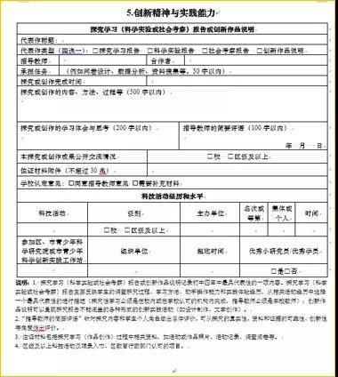 在综评这一环节与众多孩子拉开差距的关键点在于→创新精神与实践能力,这部分主要包含研究性学习专题报告和市级以上科技活动、创造发明、专利情况。
