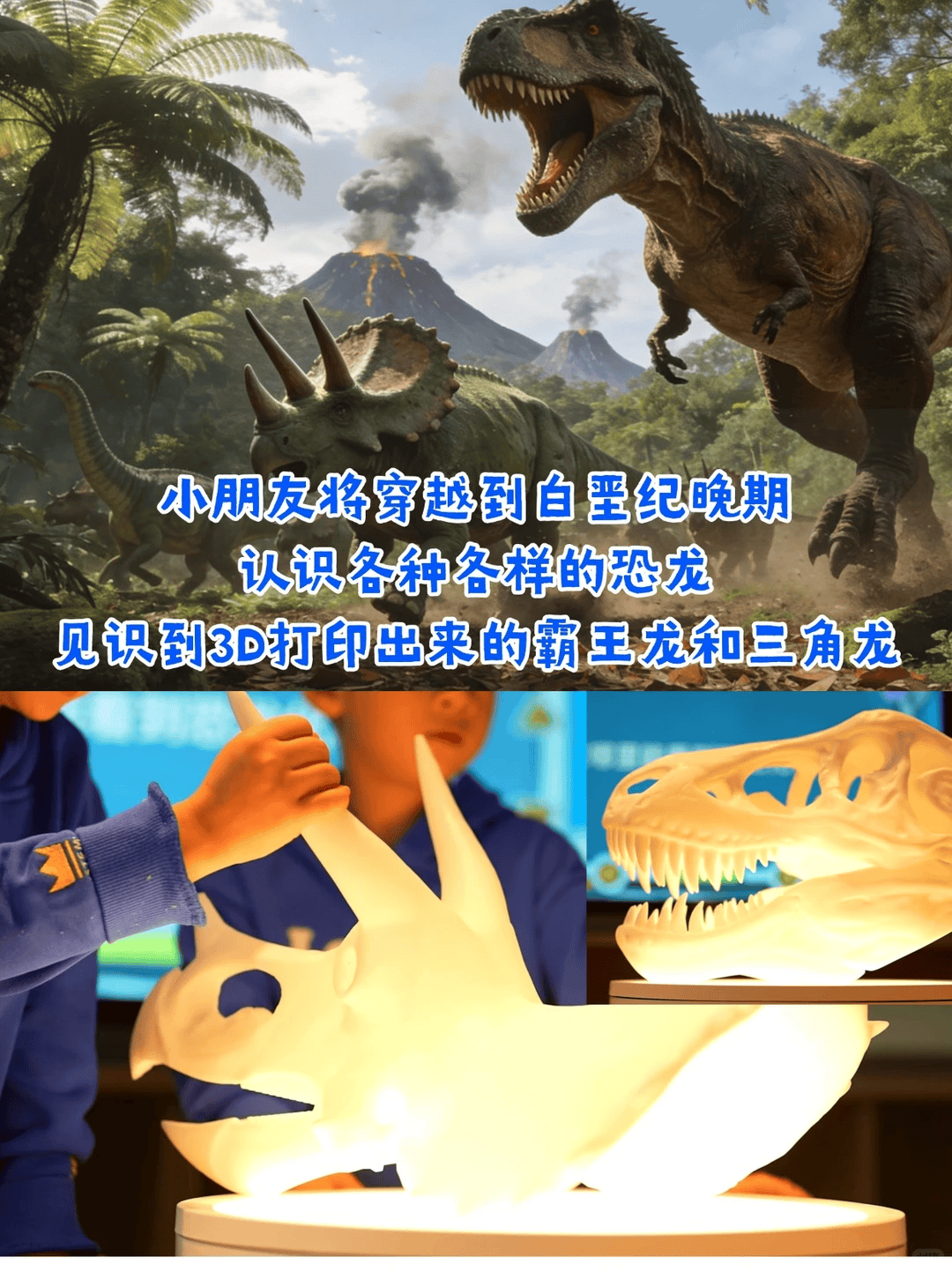 3D 恐龙化石零距离接触!霸王龙、三角龙头骨模型逼真到惊艳,孩子瞬间代入亿万年前的恐龙世界,好奇心直接爆棚!