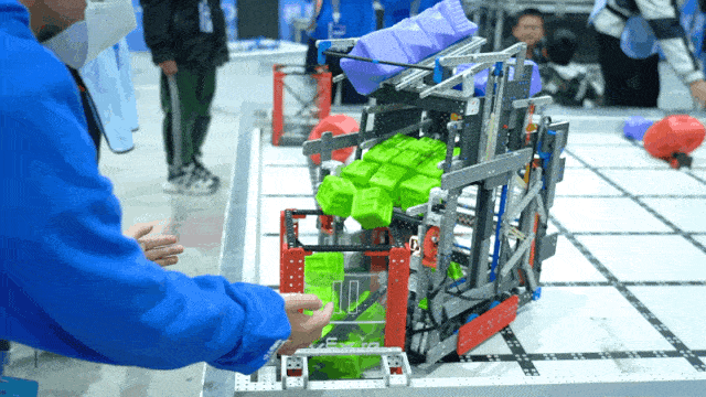 前期进行得很顺利,当机器完成任务停泊到基地时却发生了意外,机器不小心将一个方块推到了基地里,而当选手们发现这个情况时已经来不及将这个方块清空。