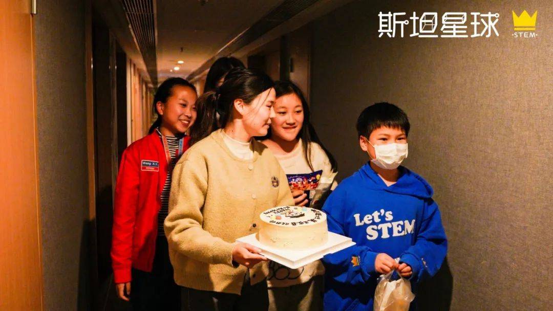 除了激情澎湃的赛场,场外也有很多温馨的瞬间。在国赛期间,有位学员迎来了自己的生日,教练、队友和家长们特意为他准备惊喜,送上了蛋糕。